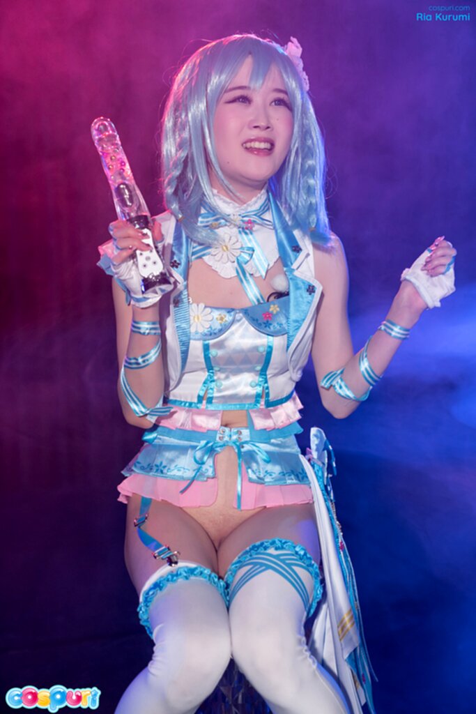 Ria kurumi seated knees pressed together holding vibrator