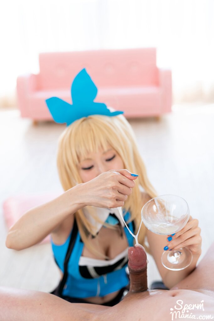Mizuki playing with cum holding glass